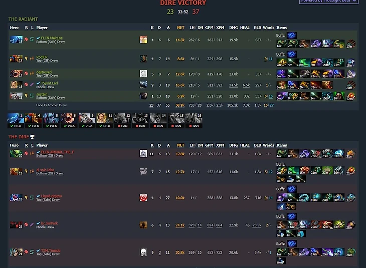 Malr1ne, Larl и Rodjer проиграли игру за 32 минуты. Malr1ne сыграл на керри Разоре со счетом 4-6-6, Larl – на Котле в миду 9-3-10.