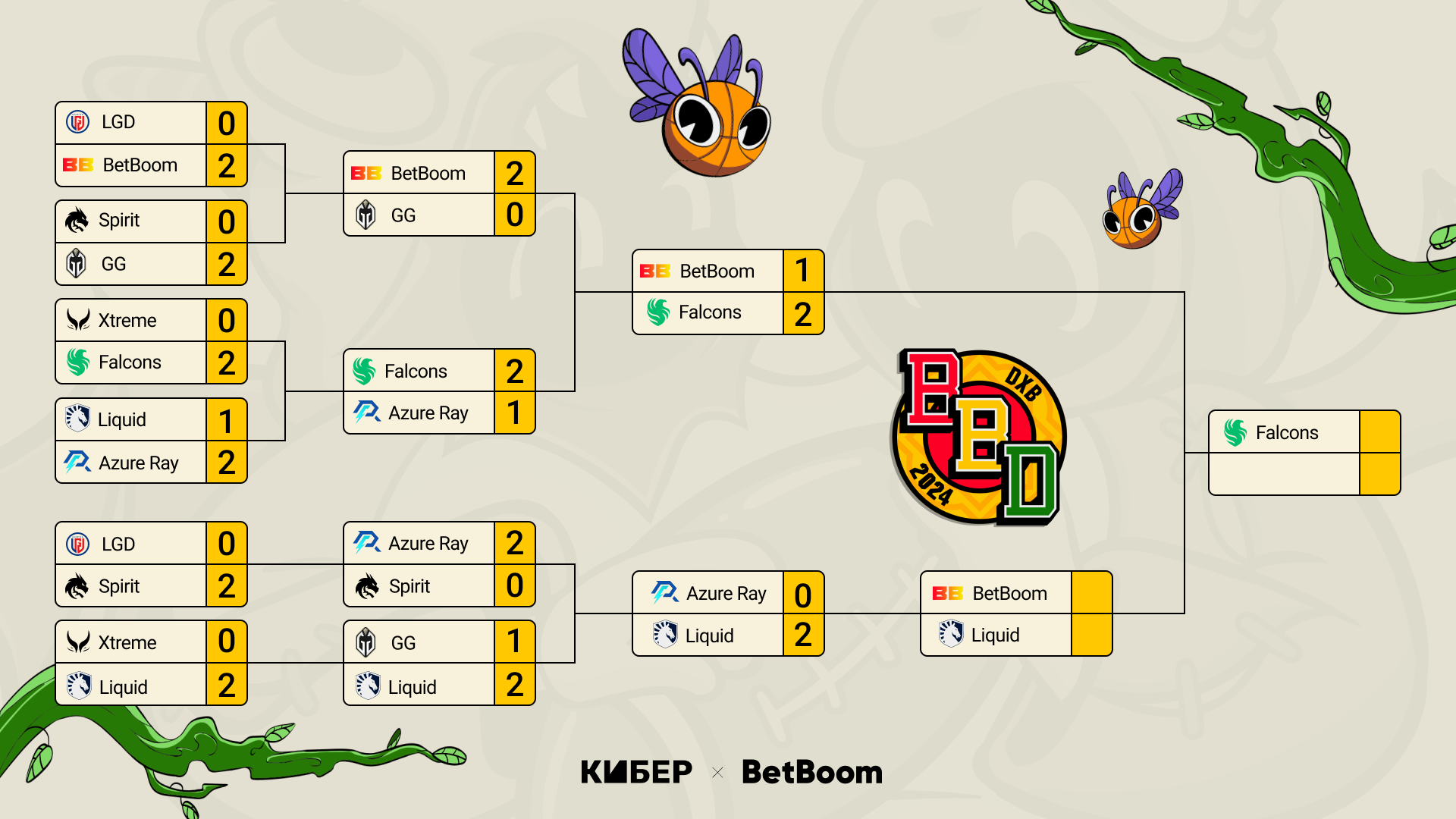Участники плей-офф: LGD, BetBoom Team, Spirit, Gladiators, Xtreme, Falcons, Liquid, Azure Ray,
