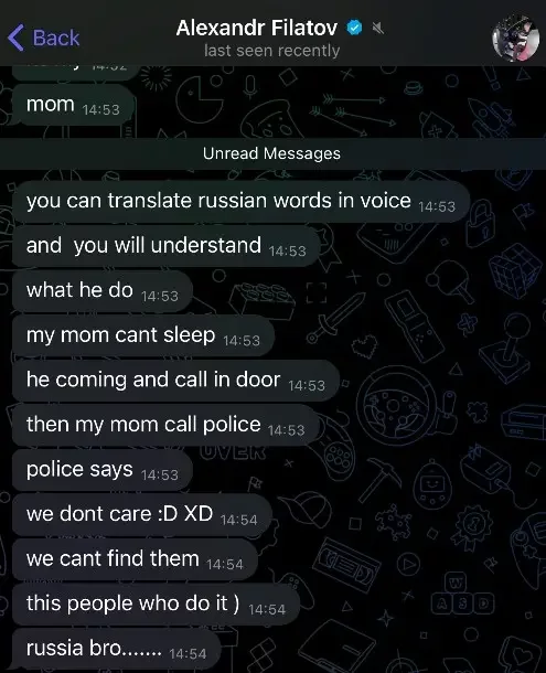 Заканчивается материал скриншотами сообщений, где Sensibility пишет об угрозах его семье, также, если верить скриншотам, в квартиру его семьи ломился неизвестный: