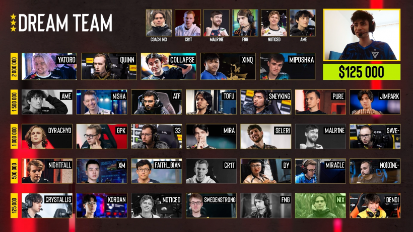 Общий фэнтези-бюджет для пика киберспортсменов был 3,5 млн долларов.
