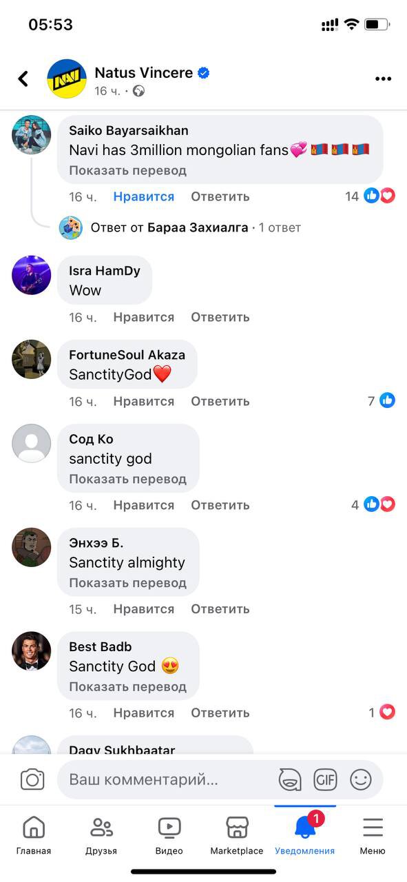 «Какое теплое прощание и приветствие в NAVI у Sanctity, в этом самая большая прелесть игроков из небольших стран, там самая горячая и преданная фан-база», – написала в телеграме Жанна Батьковна, менеджер NAVI. Она показала, как монгольские фанаты отреагировали на трансфер в соцсетях IHC и NAVI.
