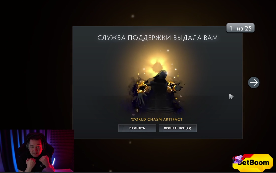 Головачу после окончания матча на стриме пришло уведомление о возврате удаленных вещей из Доты.