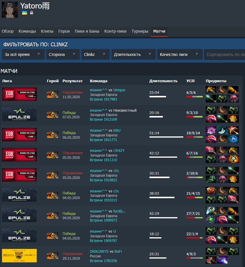 Последний раз Илья «Yatoro» Мулярчук играл Клинкзе 11 мая 2020 года.