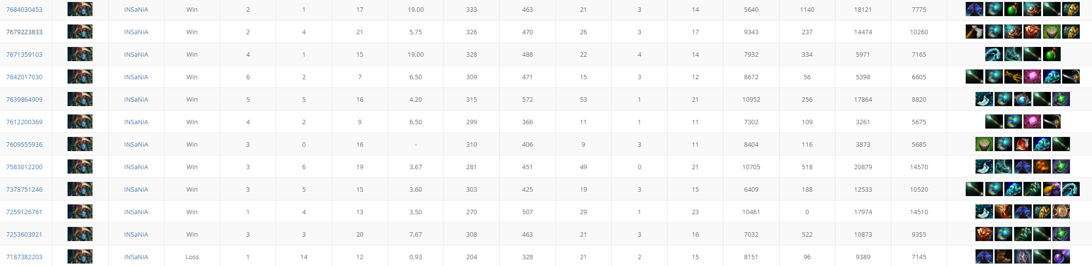 Insania выиграл 11 матчей подряд на Оракле.