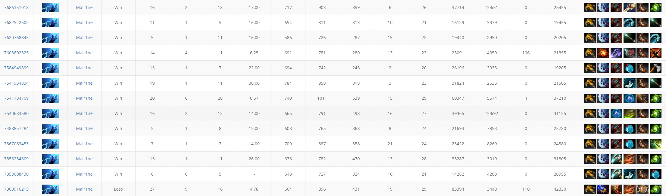 Malr1ne выиграл 12 матчей подряд на Разоре.