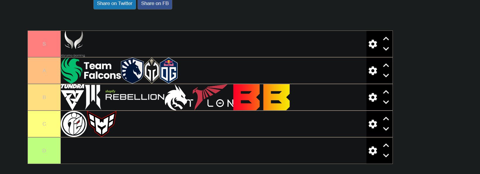 Falcons, Liquid, GG и OG попали в A-тир.