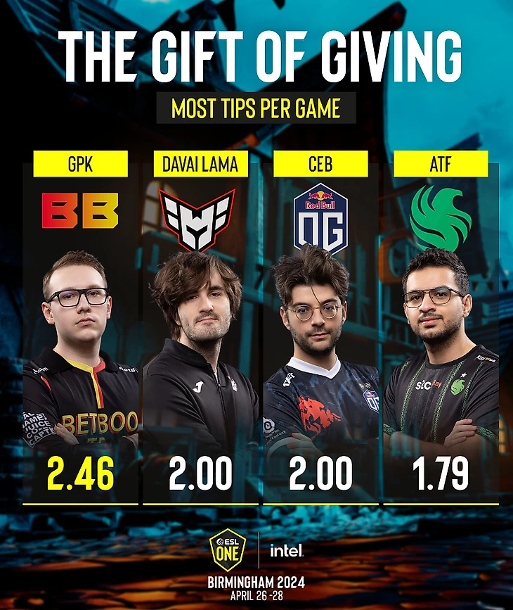 Gpk – первый по среднему числу типов за игру на ESL One Birmingham. Ceb и Davai Lama – в топ-3