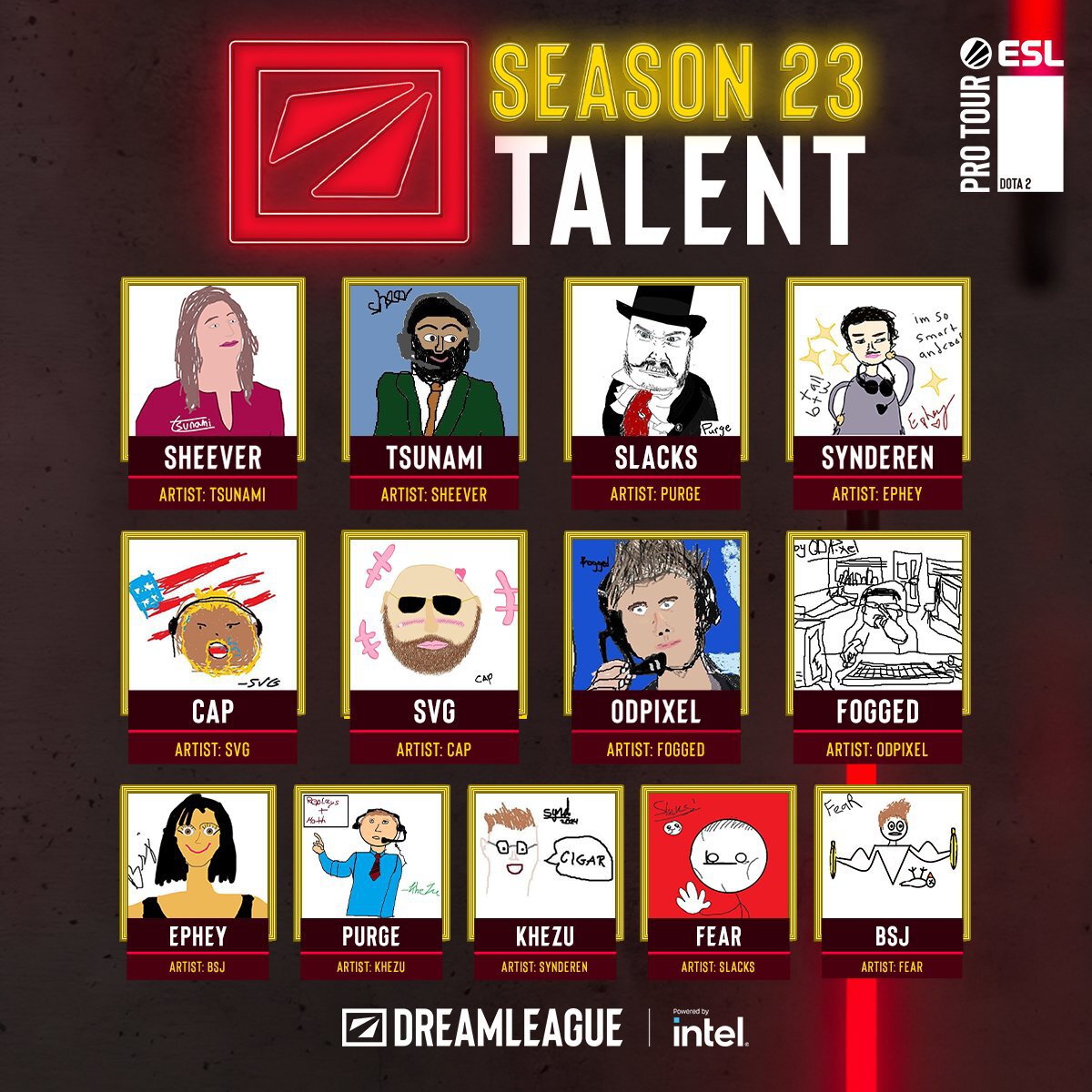 Комментаторы нарисовали шаржи друг на друга для анонса англоязычной студии DreamLeague 23