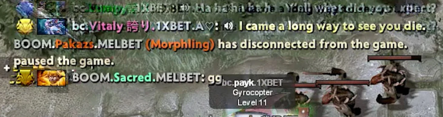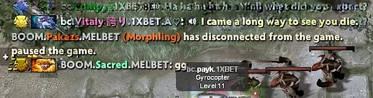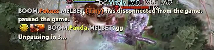 На обеих картах керри Boom Кристиан «Pakazs» Савина выходил из матча, после чего его тиммейты писали gg. Первая карта завершилась на 25-й минуте со счетом 33:11, вторая – со счетом 26:3 на 14-й.