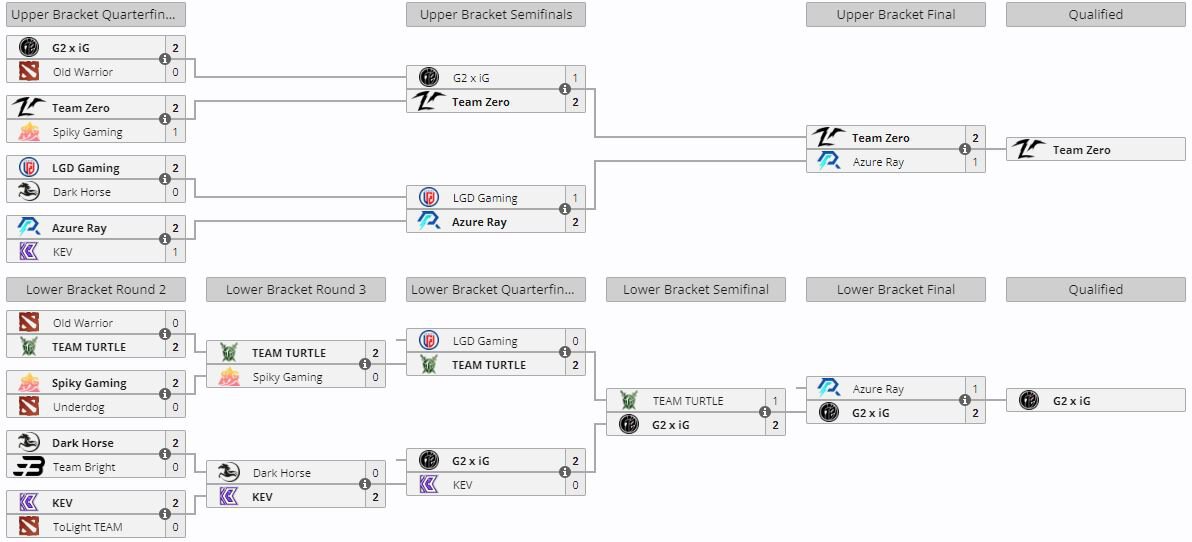Участники: G2.iG, Old Warrior, Zero, Spiky, LGD, Dark Horse, Azure RayKEV, Turtle, Underdog, Bright, ToLight.