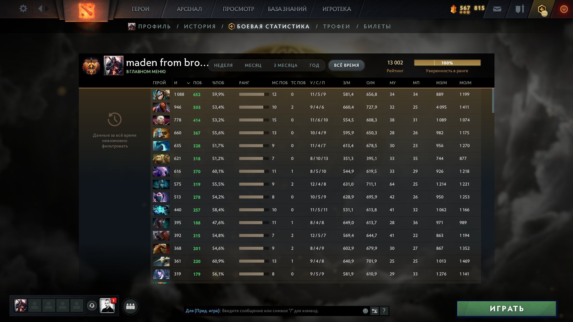12 тысяч MMR V-Tune апнул в декабре 2023 года. Сейчас он занимает 43-е место в европейском ладдере.
