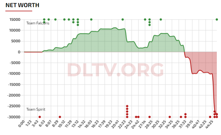 Falcons вели 10 тысяч золота на 17-й минуте, но при заходе на ХГ умерли впятером и позволили Spirit вернуться в игру. Команда Ярослава «Miposhka» Найденова выиграла карту на 45-й минуте.