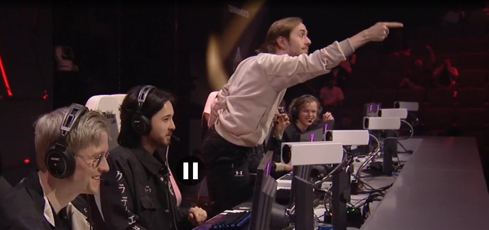 Мидер Gladiators сделал жест «я вас не слышу» в сторону игроков Falcons, приложив ладонь к уху. Таким образом он отреагировал на трешток соперника в общем чате во время игр.