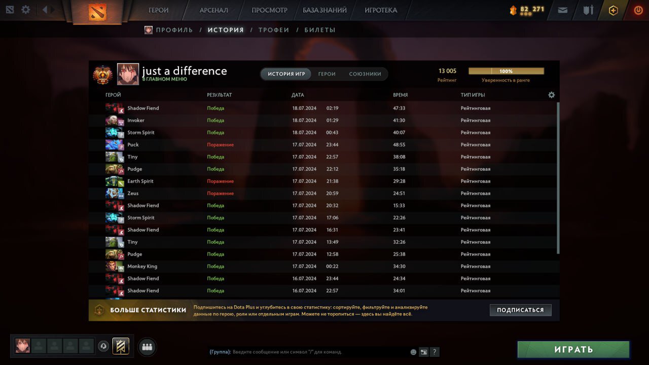Kiyotaka апнул 13 тысяч MMR. Он сыграл 91 матч за последние 8 дней с винрейтом 53,85