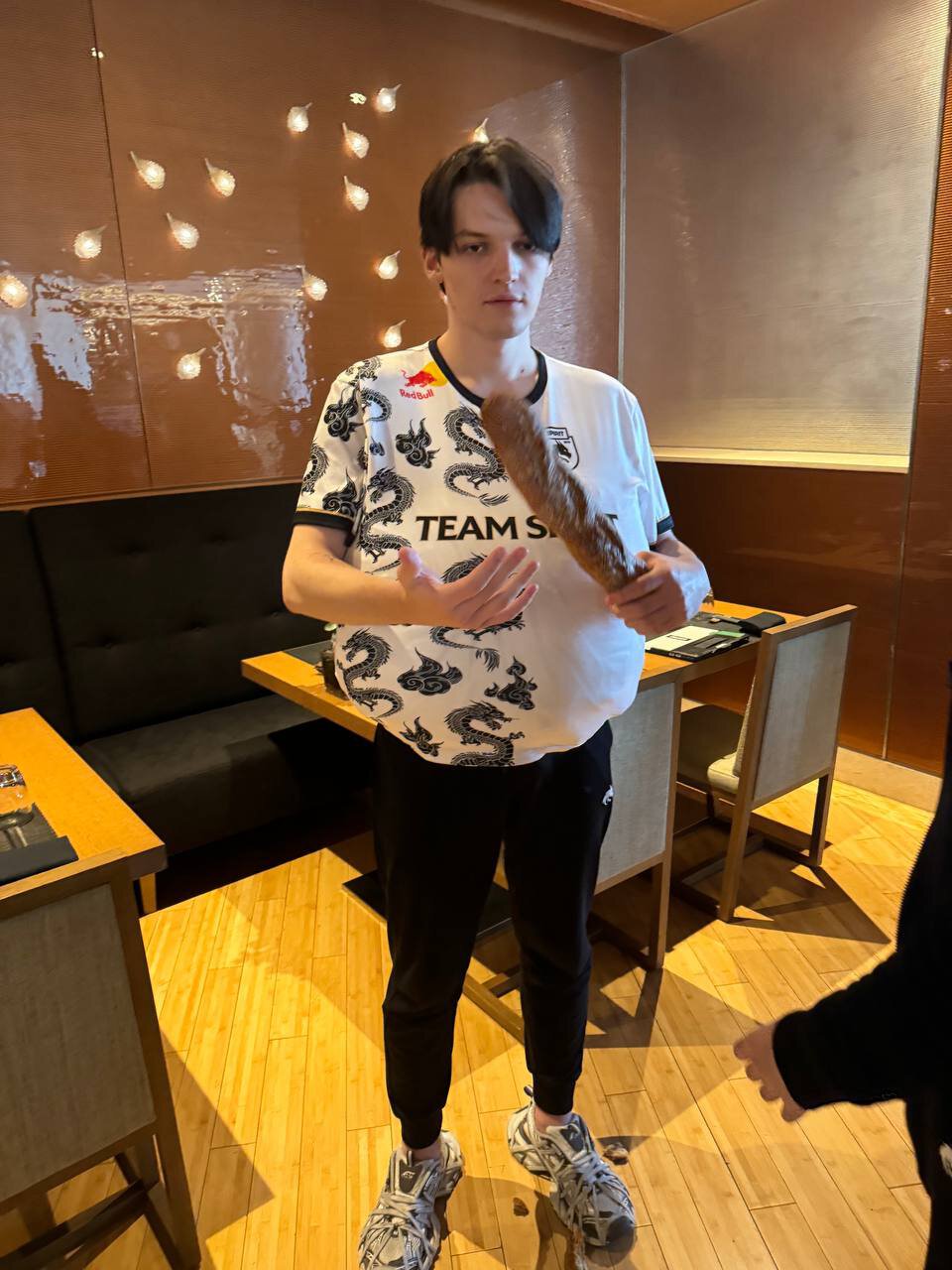 «######## [Проиграли]», – написал Дмитрий «Korb3n» Белов в своем телеграм-канале, приложив фото Мирослава «Mira» Колпакова с багетом.