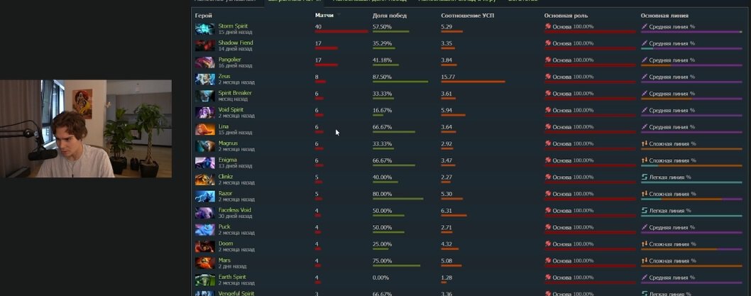 И здесь будет 40 матчей на Шторме, 17 на Финде. Это, по-моему, не выглядит как игра пару дней по рофлу на миде. Пару дней порофлил на Шторме сорокетку ###### [сыграл], 17 на Финдале, 17 на Панго. [...] Если человек 70 игр за 2 дня играет, то окей.