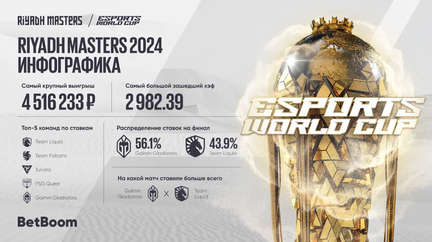 Самый крупный выигрыш – 4,5 млн рублей, самый большой кэф – 2982,39: BetBoom подвела итоги Riyadh Masters