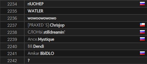 На 2241-й строчке европейского ладдера находится игрок с ником BblDLO, на 2234-й – riUOHEP.