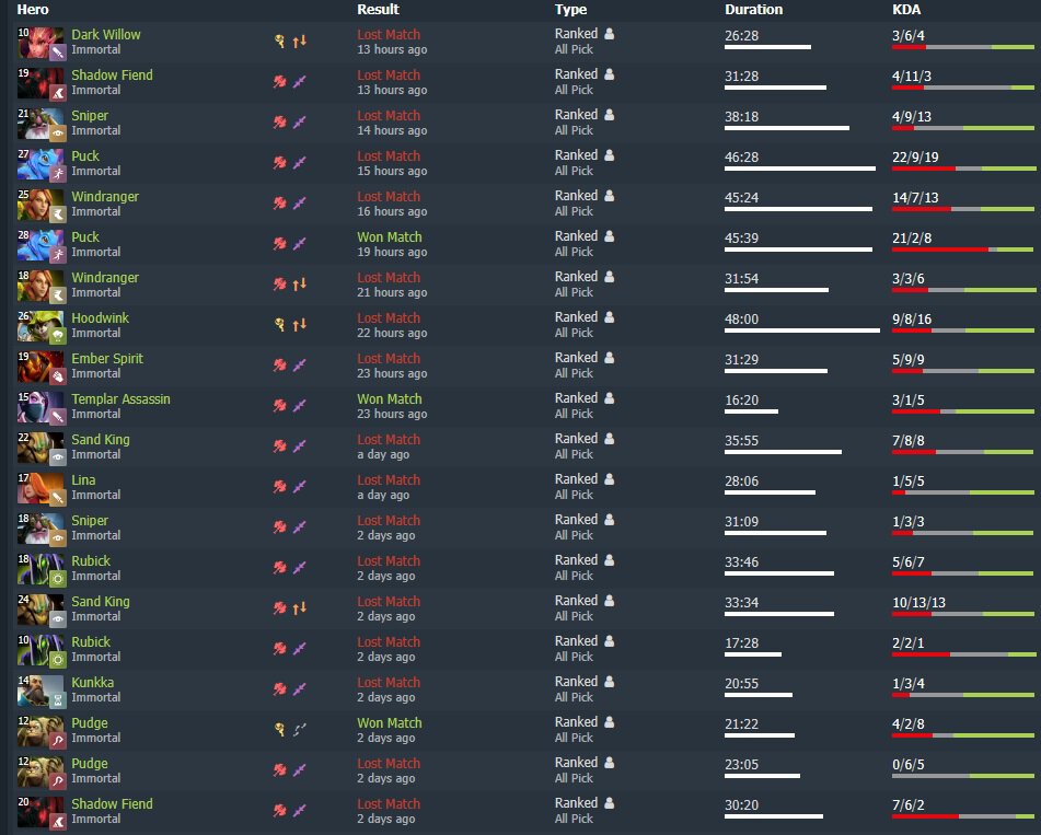 За неделю Данил «Dendi» Ишутин сыграл 55 матчей с винрейтом 38,18.