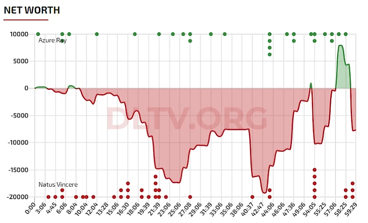 Вторая карта досталась NAVI – она продлилась 79 минут. На третьей карте украинская команда вела 17 тысяч на 25-й, но Azure Ray смогла полностью вернуться в игру. Ключевым моментом стала смерть Lou у вражеского трона без байбэка.
