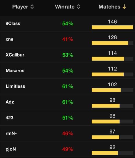 Винрейт 9Класса за 146 матчей составил 54,62.