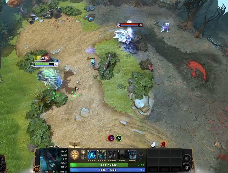 «Любая Break-способность ломает пассивку Визажа навсегда. Не поможет даже умереть и возродиться. Ударились о мелких нейтралов разок, не набрав заряды пассивки? Получайте сломанную (компонент на снижение перезарядки будет работать, но снижение урона — нет).