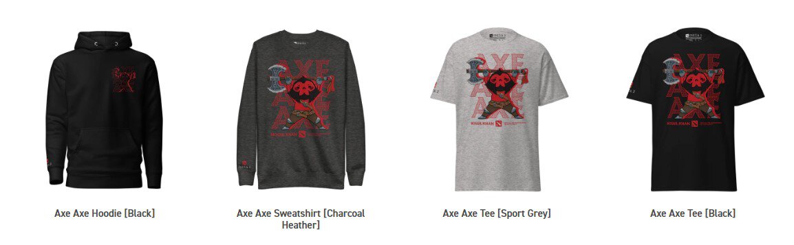Например, плюшевые игрушки Pudge и Witch Doctor стоят по 3600 рублей, а худи с Аксом можно приобрести за 7000 рублей.