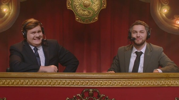 Для обоих комментаторов это первый гранд-финал в карьере. Гранд-финал TI12 комментировали Рустам «Adekvat» Мавлютов и Арсений «Arszeeqq» Усов.