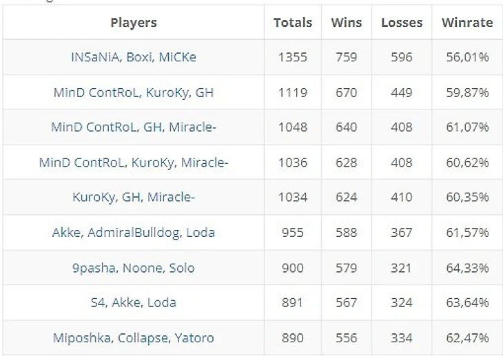 Micke – Boxi – Insania продолжают лидировать по количеству карт, сыгранных вместе на про-сцене.