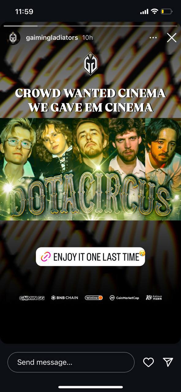 «Толпа хотела кино. Мы дали им кино», – заявил клуб в сторис инстаграма с отсылкой на сообщение «Cinema» в чате, которое зрители TI спамили во время знаковых моментов турнира.