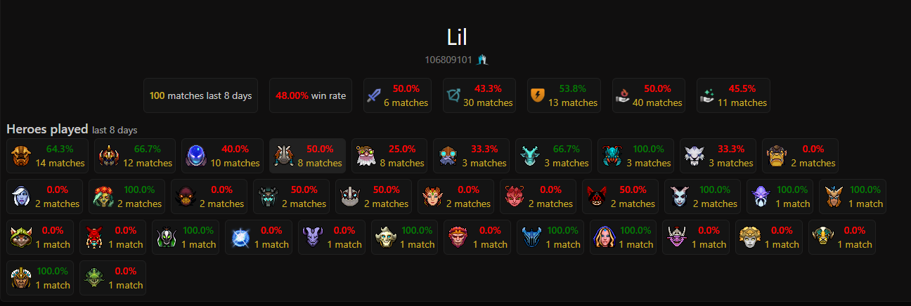 • Lil сыграл 100 матчей на 35 уникальных героях за последние 8 дней – 49 из них на корах
