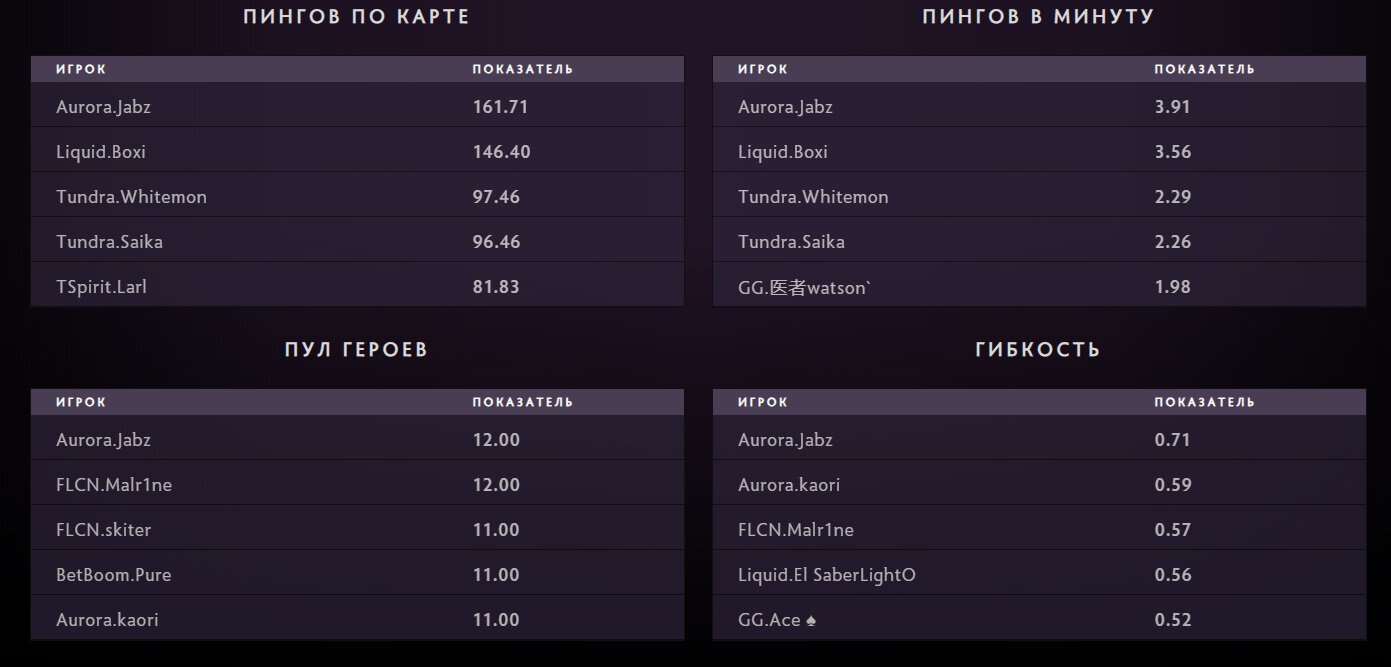 Ануча «Jabz» Джиравонг чаще всех кликал по карте – в среднем 161 пинг. У Найтфолла только 96 пингов.
