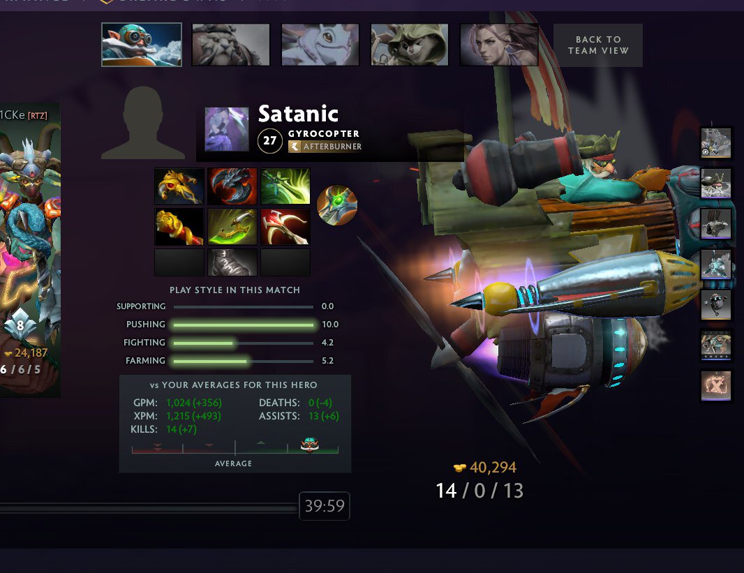 Также керри Spirit приложил скриншот игры на Гирокоптере на последней карте против Liquid, в которой он сыграл со счетом 14-0-13.