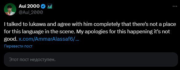 Аммар «ATF» аль-Ассаф удалил твит двухдневной давности, в котором извинился за угрозы в адрес Глеба «Kiyotaka» Зырянова в матчмейкинге.