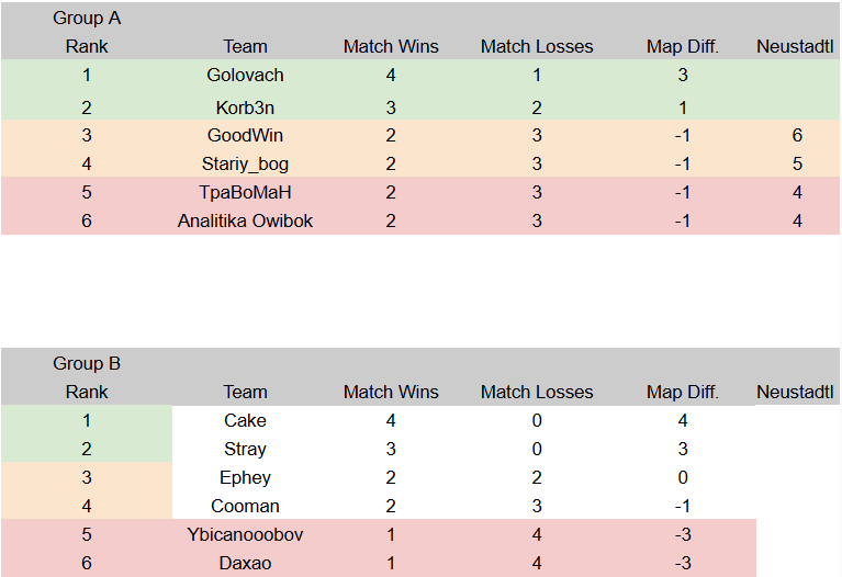 В плей-офф из группы B прошли команды Кейка (4-0), Стрея (3-0), Эфи (2-2) и Кумана (2-3). Посев в плей-офф определится после результатов оставшихся матчей: Stray Team – Ephey Team и Stray Team – Cake Team.