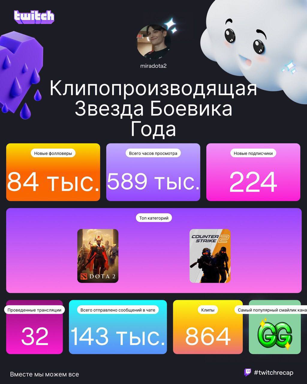 Mira показал итоги года на Твиче: 32 трансляции и 84 тысячи новых фолловеров