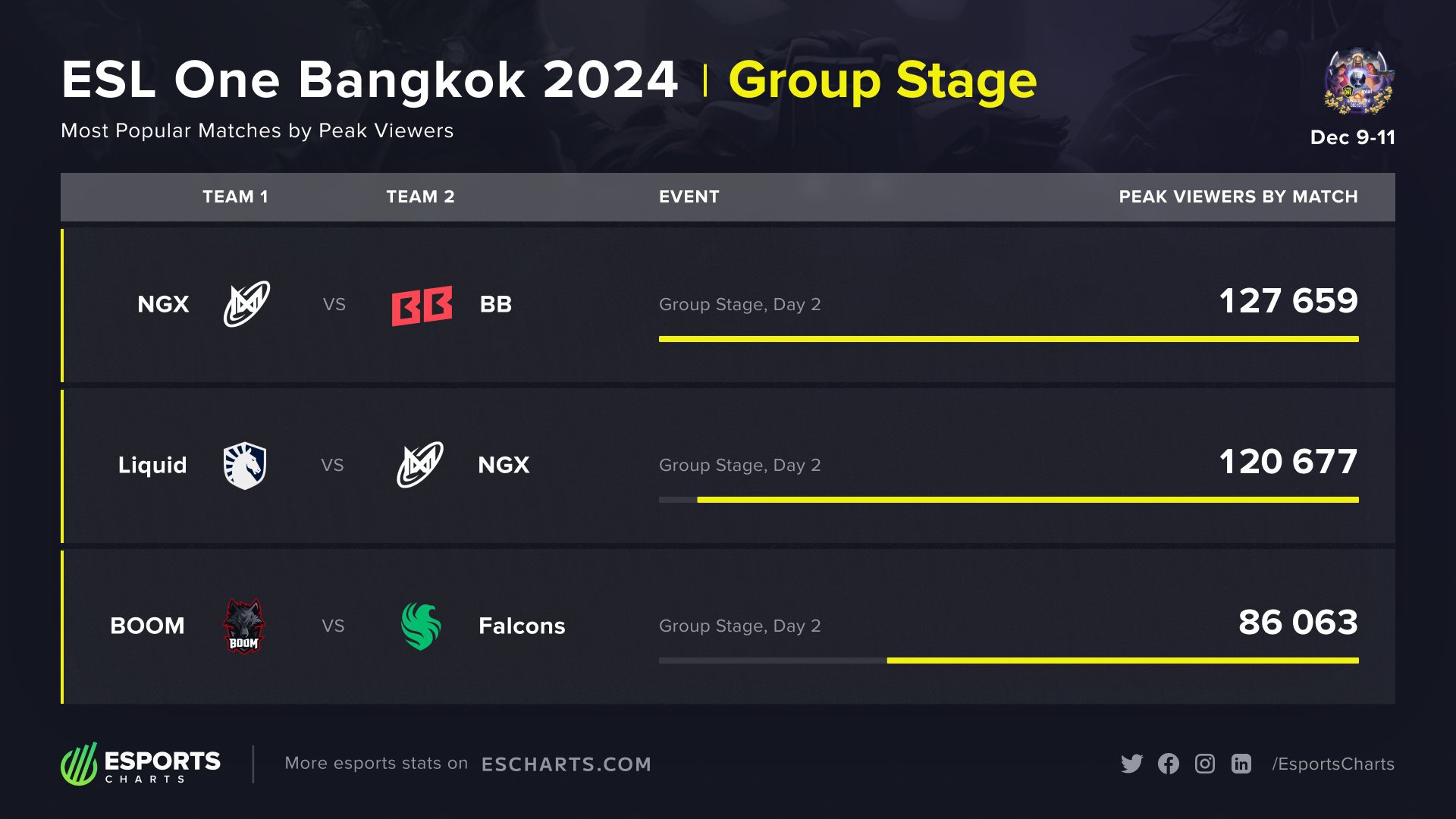 Матч BB Team – Nigma стал самым популярным в группах на ESL One Bangkok – 127 тысяч зрителей