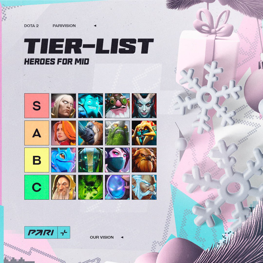 По мнению Филипе «Astini« Астини, сильнейшими мидерами патча являются Инвокер, Шторм, Снайпер и Квопа. Котла, Пугну, Арк Вардена и Зевса тренер PARIVISION отнес в тир-C.