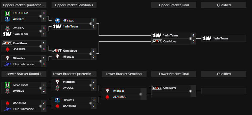 15:00 4Pirates 1:2 1win / верхняя сетка
