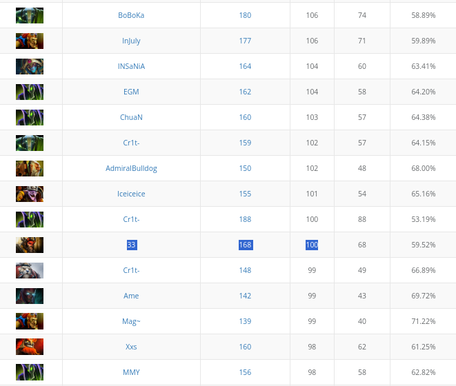 33 выиграл 100 матчей на Бистмастере на про-сцене. Винрейт игрока на герое – более 59