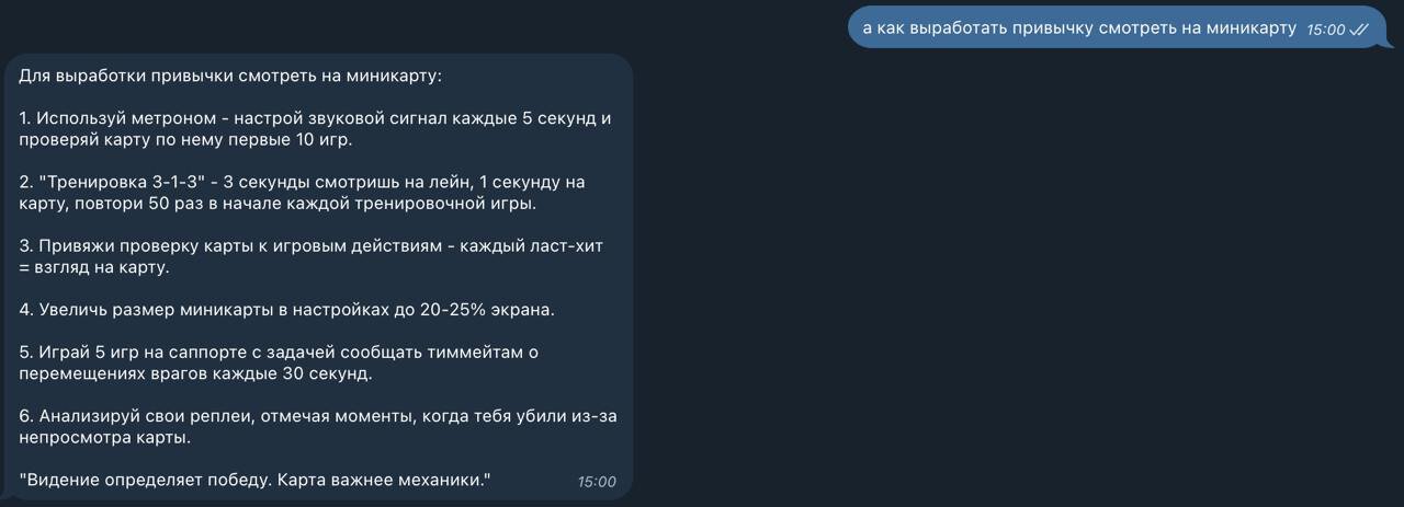 «Создаю своего ИИ-коуча для помощи молодым в освоении Доты. Вы бы пользовались такими советами? Какие вообще вещи вы бы с ним обсуждали?» – написал Роман «Resolut1on» Фоминок в своем телеграм-канале, прикрепив скриншот переписки с ИИ.