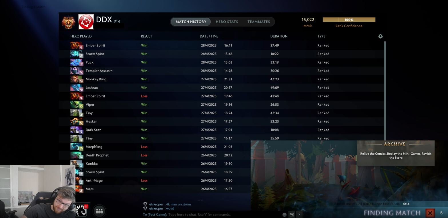 Qojqva впервые достиг отметки в 15 тысяч MMR в Доте.