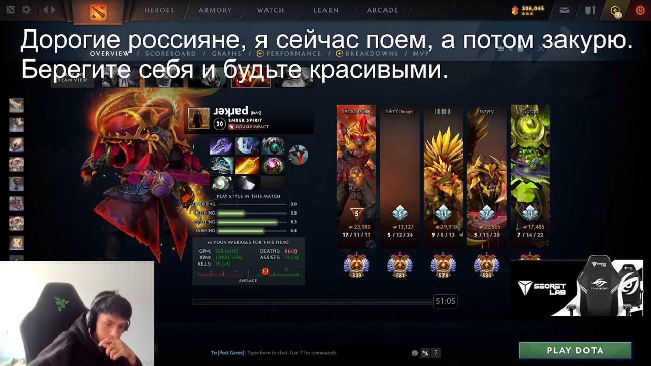 Отметим, что перуанский киберспортсмен ранее подпевал песням «Я роняю запад» и «Я русский» во время трансляций.