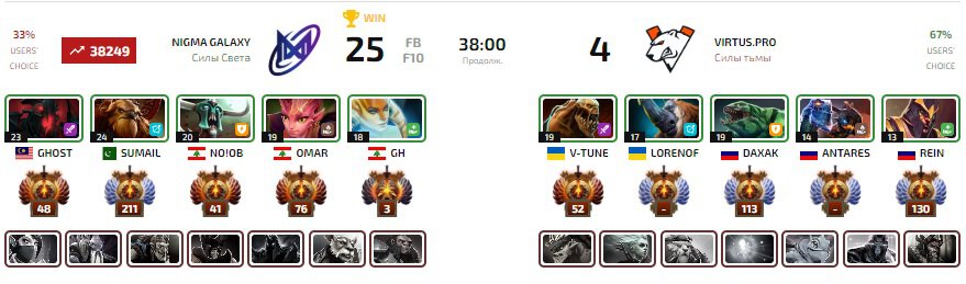 Состав Virtus.pro: V-Tune, Lorenof, Daxak, Antares, Rein.