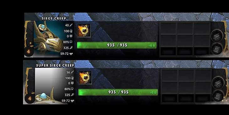 В чем отличие? Суперкатапульта получает +16 увеличение урона (35-46 ➡️ 51-62 или, если брать средние значения, то 40 ➡️ 56) но так как это осадный тип урона, то по факту получается, что увеличение будет в 2,5 раза больше или +40. Разумеется, это не учитывая броню. Ничего больше не изменяется, ровно как и у Mega Siege Creep – они такие же, как Super.