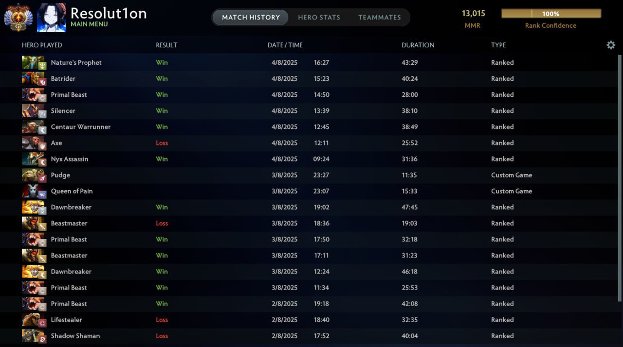 Resolut1on достиг отметки в 13 тысяч MMR в Доте.