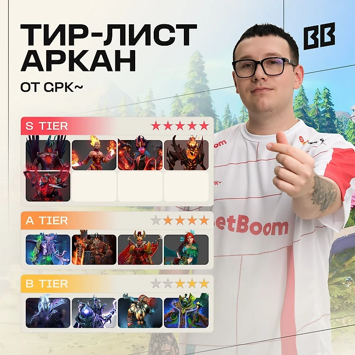 • Gpk составил тир-лист аркан: ТБ, Лина, Квопа, СФ и Пудж – в S-тире, Спектра, Разор, Шейкер и Рубик – в самом низу тира