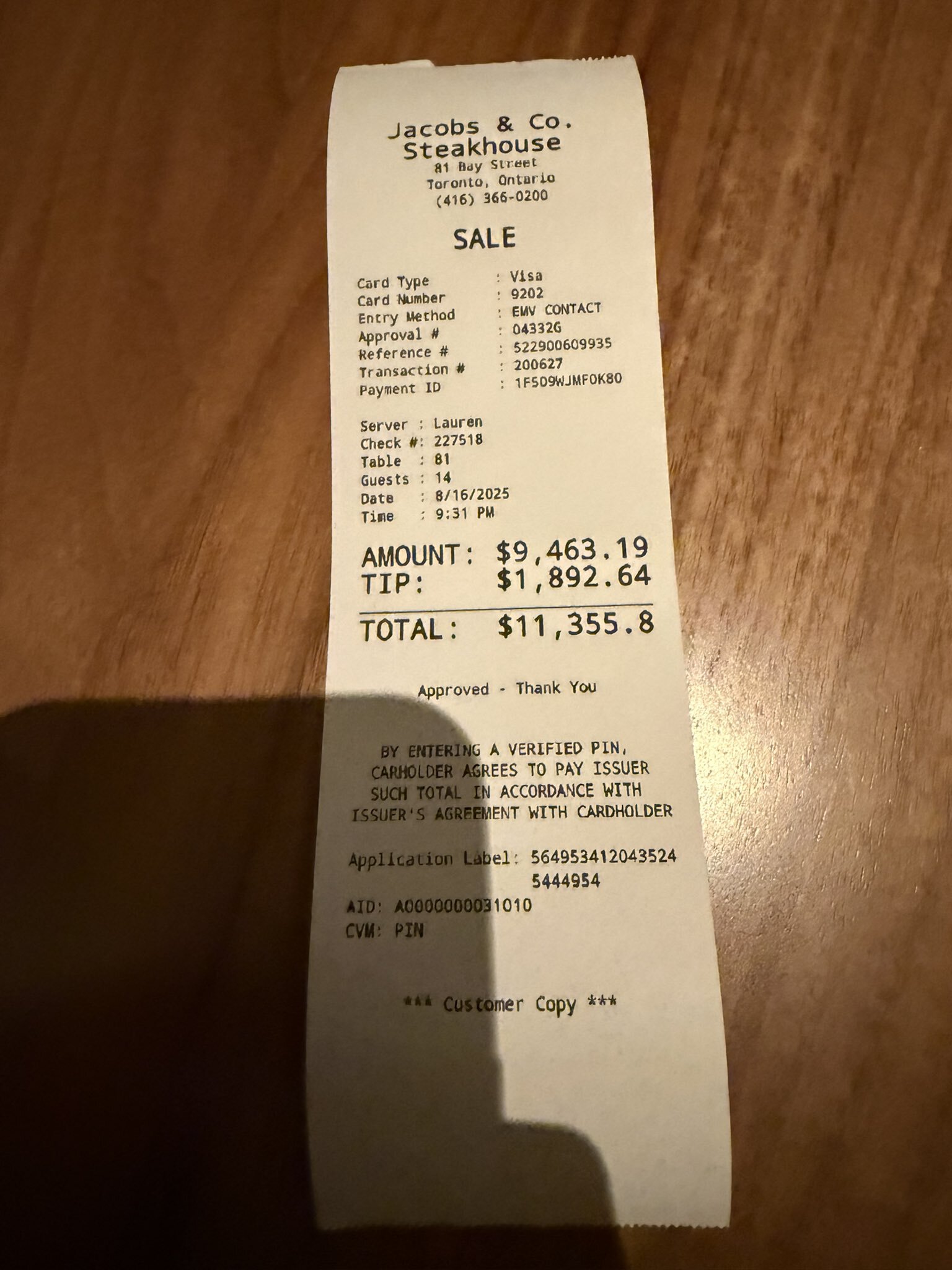 EternalEnvy также опубликовал чек за вечер – 11,3 тысячи долларов.