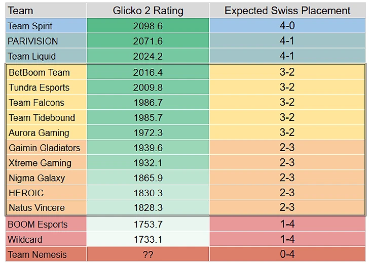 «Сейчас я немного занят, но многие просят меня поделиться прогнозами. Вот текущие рейтинги Glicko 2 с ожидаемыми результатами швейцарки. Обратите внимание, что о Nemesis мало что известно.