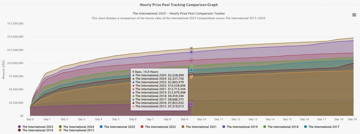 Спустя 9 дней после выхода Компендиума общий призовой фонд турнира составляет 2 228 999 долларов.